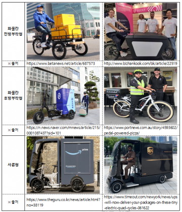 영국・프랑스・독일 등 주요 선진국 및 글로벌 물류업계는 도심 내 근거리 운송수단으로서 친환경 배송 수단인 화물용 전기자전거를 적극 도입하고 관련 산업을 활발히 육성하고 있다.