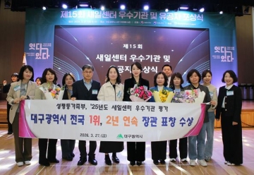 대구광역시는 성평등가족부가 주관한 ‘2025년 여성경제활동촉진 지원사업 평가’에서 전국 우수 지자체로 선정되는 쾌거를 이뤘다. 시는 지난 3월 27일(금) 서울 마포중앙도서관에서 열린 ‘2026년 새일센터 우수기관 및 유공자 포상식’에 참석해 우수기관 표창을 수상했다.