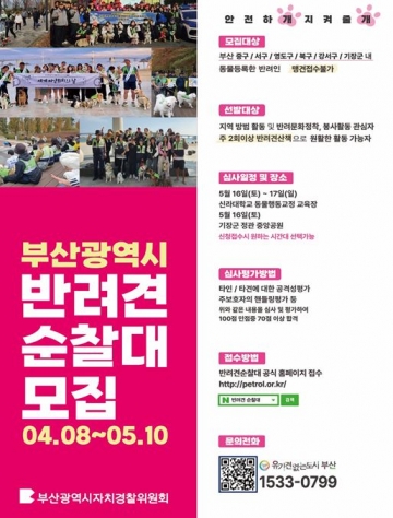 - 「부산 반려견 순찰대」 부산 전 자치구로 확대 운영해…
