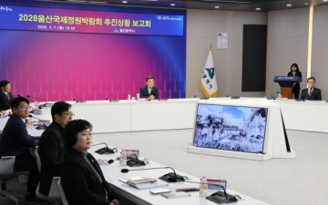 2028울산국제정원박람회 추진상황 보고회가 7일 울산시청 대회의실에서 열린 가운데 김두겸 울산시장과 2028울산국제정원박람회 조직위원회 관계자, 관련 실·국장, 울산연구원 관계자 등 이 주요 사업 추진 현황을 공유하고 향후 실행계획을 논의하였다.