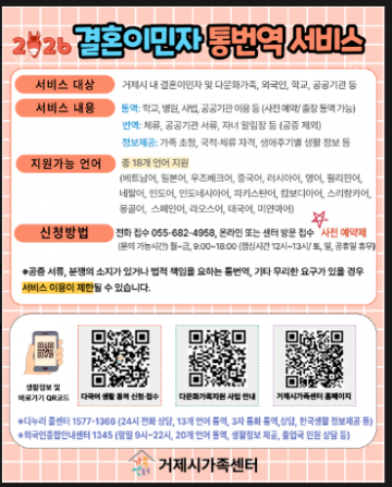 거제시 결혼이민자 무료 통,번역 서비스 시행
