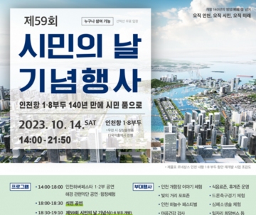 - 14일(토) 인천항 1·8부두에서 제59회 시민의 날 기념행사 개최