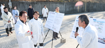 박완수 도지사는 김해 축산종합방역소 현황과 동절기 가축방역 추진사항을 보고받고, 가축전염병의 유입을 방지하기 위해 방역시설을 차례로 둘러보며 차량소독을 시연했다.