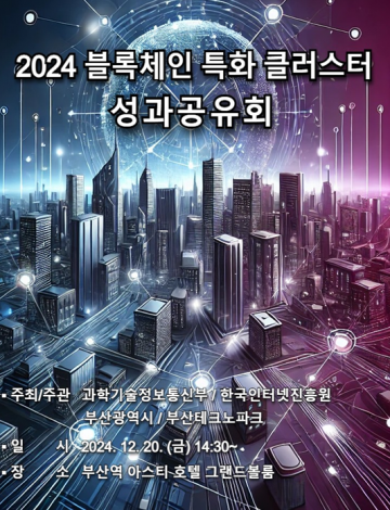 □ 이러한 「블록체인 특화 클러스터 조성」 사업의 주요 성과와 성공사례를 공유·확산하기 위해 오늘(20일) 오후 2시 30분 아스티호텔 부산에서 성과공유회가 개최된다.