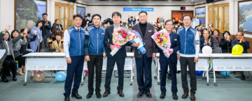 전국공무원노동조합 남해군지부는 4일 군청 대회의실에서 ‘베스트 간부공무원 시상식’을 개최했다. 베스트 간부공무원으로 선정된 하홍태 해양환경국장과 정중구 관광경제국장, 정광수 도시건축과장에게 시상금과 꽃다발을 증정했다.