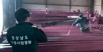 B업체는 산지에 펜스를 설치해 단속과 접근이 어려운 엄폐된 야외장소에서 버젓이 대형 철 구조물에 도장작업을 해오다, 도 특사경의 드론 항공 촬영으로 적발됐다.