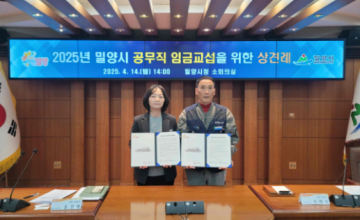 밀양시(시장 안병구)는 14일 시청 소회의실에서 밀양시 공무직 노동조합과 2025년도 임금협상을 위한 상견례를 개최하며 본격적인 교섭에 들어갔다고 밝혔다.