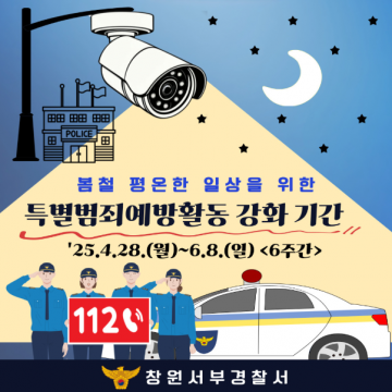 - ’25.4.28(월).~6.8.(일) 6주간 봄철 특별범죄예방활동 강화 기간 운영