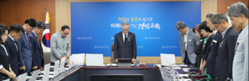 경상남도교육청(교육감 박종훈)은 26일 경남교육청 중회의실에서 열린 월요회의에서 최근 제주도의 한 중학교에서 발생한 교사 사망 사건과 관련해 깊은 애도를 표하고, 교사를 실질적으로 보호할 수 있는 법적·제도적 장치 마련의 필요성을 다시 한번 강조했다.