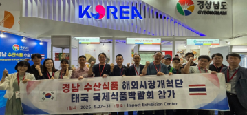 경상남도(도지사 박완수)는 이달 27일부터 5일간 태국에서 개최되는 ‘2025 태국 국제식품박람회(THAIFEX-Anuga Asia 2025)’에 참가해 경남 수산식품의 우수성을 알리고, 아세안 지역을 중심으로 한 해외시장 공략에 나섰다고 밝혔다.