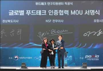 이날 착공식과 함께 포항시와 경상북도는 미국위생협회(NSF)와 ‘글로벌 푸드테크 인증 협력’을 위한 업무협약(MOU)을 체결했다.