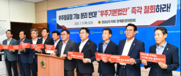 최근 국회에서 발의된 「우주기본법안」이 국가 우주정책 컨트롤타워인 우주항공청의 기능을 약화시키고, 중복기구를 신설하는 구조라는 비판이 제기되는 가운데, 경상남도의회 경제환경위원회 허동원 위원장을 비롯한 위원들이 기자회견을 열고 우주항공청 기능 분리 반대와 법안 철회를 강력히 촉구하고 나섰다.