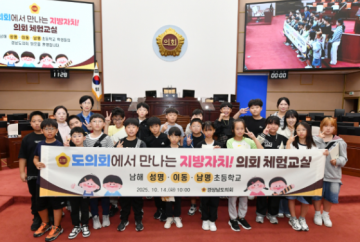 경상남도의회(의장 최학범)는 14일 남해 소규모 공동학교(성명초, 이동초, 남명초) 5학년 학생 20명을 대상으로 도의회에서 만나는 지방자치! 의회체험교실을 개최했다.