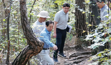 이번 정비공사는 데크 보강, 데크 계단 설치, 로프·목재 난간 설치, 자연석 계단 설치 및 정비, 야자매트 설치 등을 통해 탐방로 방문객의 안전성을 강화는 사업으로, 성 군수는 전후 추진 현황 및 탐방로를 꼼꼼히 살폈고 현장 관계자를 격려했다.