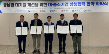 경남도(도지사 박완수)는 23일 낙동강유역환경청 대회의실에서 효성중공업(주), 낙동강유역환경청, 김해시, 양산시, 함안군과 함께 『대·중소기업 지역대기질 개선 상생협력 사업 연도별 참여 확약식』을 체결했다고 밝혔다.
