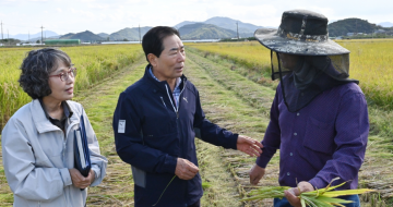 성 군수는 작물 생육 및 영농 추진 상황을 점검하며 현장의 애로사항을 청취했다.