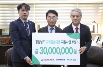 경상남도교육청(교육감 박종훈)은 6일 경남교육청 교육감 집무실에서 범한그룹, 초록우산어린이재단 경남지역본부와 함께 ‘가족돌봄아동지원사업’ 후원금 전달식을 개최했다.