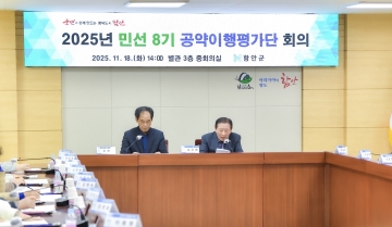 군은 지난 18일 군청 별관 3층 회의실에서 공약사업 주관 부서장과 공약이행평가단 위원 등이 참석한 가운데‘2025년 민선 8기 공약이행평가단 회의’를 열고 3년간의 공약 이행 실적을 종합점검했다.