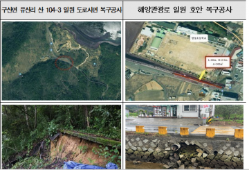 지난 7월 발생한 집중호우로 파손된 도로시설물에 대해서도 사전 조사와 실시설계를 마무리하고, 총 1억 1000만 원을 투입해 ‘구산면 유산리 산 104-3 일원 도로사면 복구’와 ‘해양관광로 일원 호안 복구’ 등 사업을 절차에 따라 순차적으로 추진해 연내 마무리 짓는다.