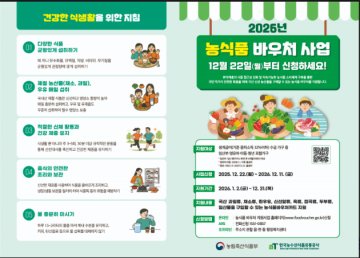 기존 이용자들은 지원 자격 요건을 충족하는 경우 별도의 신청 절차 없이 자동 접수된다. 신규 신청은 주민등록 주소지 관할 읍·면·동 주민센터에 방문하거나 농식품바우처 홈페이지(www.foodvoucher.go.kr), ARS(☎1551-0857) 등을 통해 신청이 가능하다.