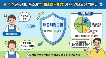 산청군은 신용보증기금과 협력해 관내 중소기업의 거래대금 미회수 위험을 줄이기 위한 ‘매출채권보험’지원을 확대한다고 20일 밝혔다.