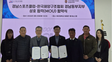 (사)경남스포츠클럽은 2월 23일 한국해양구조협회 경남동부지부(협회장 전승윤)와 수상안전 분야 전문인력 양성과 지역 주민 대상 수상 안전교육의 체계적인 기반 마련을 위한 업무협약(MOU)을 체결했다고 밝혔다.