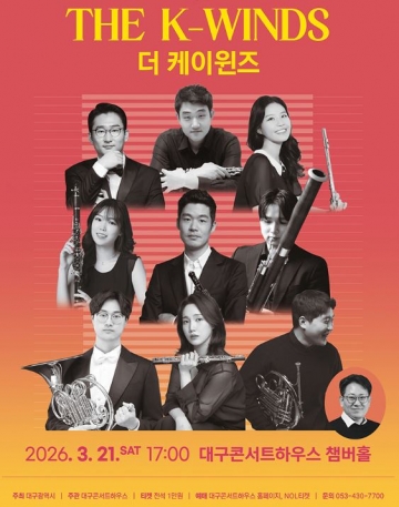 대구문화예술진흥원 대구콘서트하우스가 3월 21일(토) 오후 5시 챔버홀에서 ‘DCH 앙상블 페스티벌 – 더 케이윈즈(The K-Winds)’ 공연을 개최한다. DCH 앙상블 페스티벌은 다양한 실내악 편성을 통해 앙상블 음악의 결을 조명하는 기획으로, 앙상블 단체 고유의 해석과 사운드를 집중적으로 소개한다.