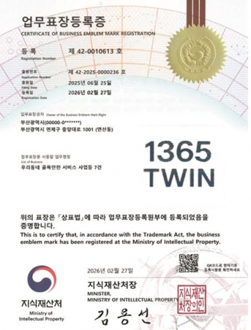 - 부산시, 시민 플랫폼 「1365 트윈」 업무표장 사용권 독점으로 영리 목적 사용 차단, 공공성 확보!