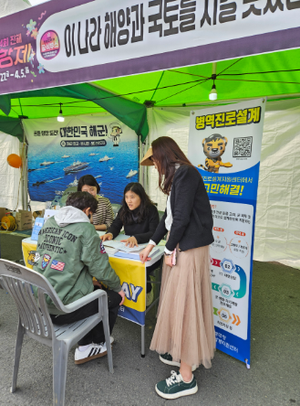 □ 축제 기간 합동 홍보부스에서는 병역의무자와 가족뿐만 아니라 관광객을 대상으로 병역판정검사 절차, 현역병 입영 및 모집병 지원제도 등 병역이행 전반에 대한 상담 서비스를 제공한다.