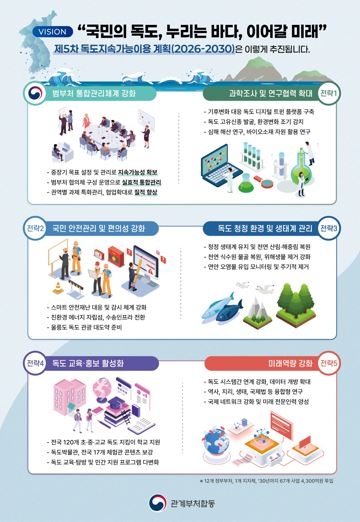 경상북도는 정부가 발표한 ‘제5차 독도의 지속가능한 이용을 위한 기본계획’과 2026년 시행계획에 발맞춰 독도의 실질적 관리주체로서 현장중심의 정책을 본격 추진한다.