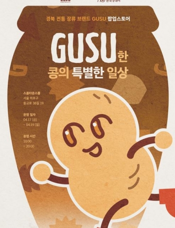 경상북도농업기술원은 경북 전통장류 공동브랜드 ‘GUSU(구수)’의 인지도 확대를 위해 4월 17일부터 19일까지 3일간 서울 연남동 스몰타운 스몰에서 수도권 소비자를 대상으로 팝업스토어를 운영한다.
